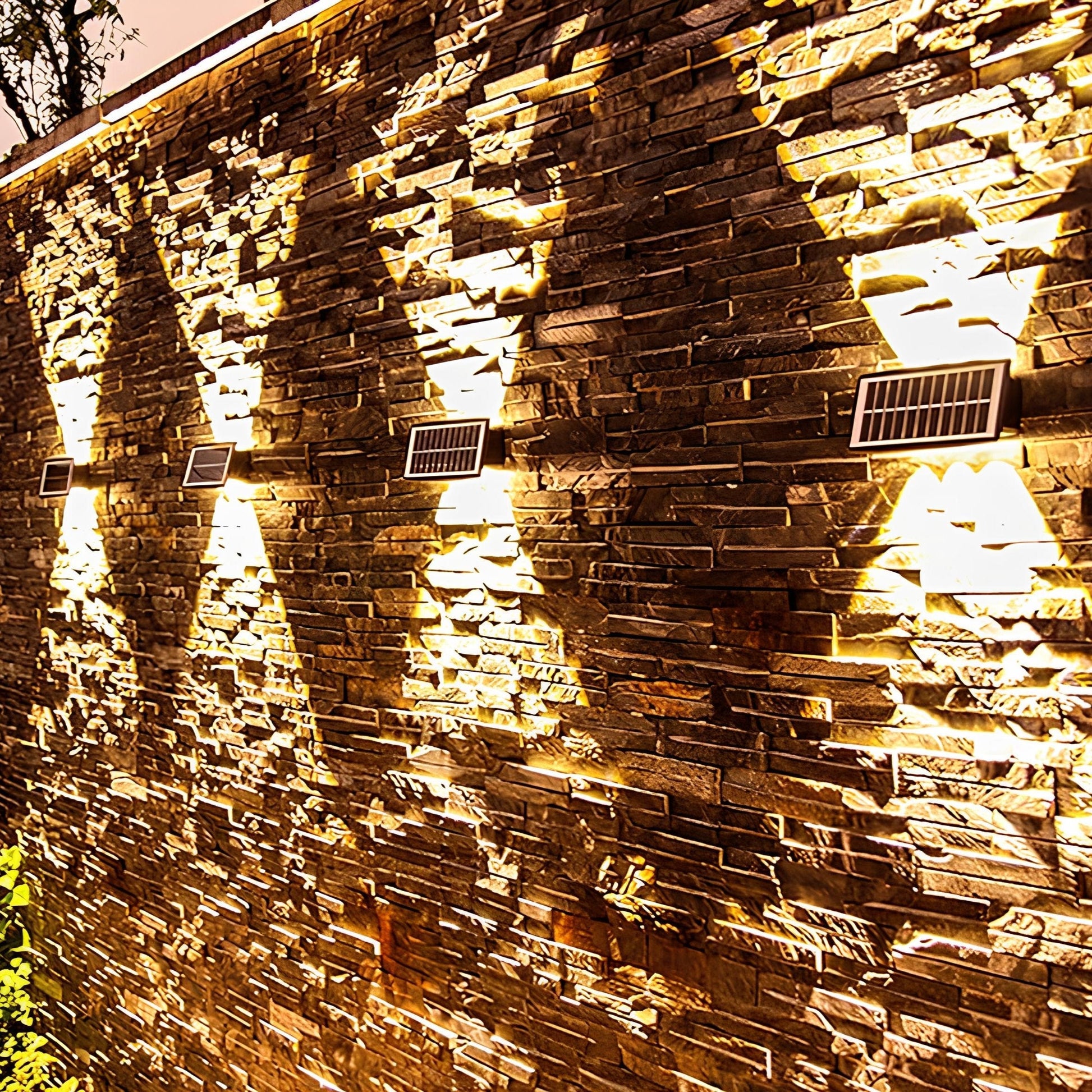 Diese Wandleuchte lädt tagsüber mit Solarenergie auf und leuchtet nachts automatisch, was eine umweltfreundliche und praktische Außenbeleuchtung bietet.