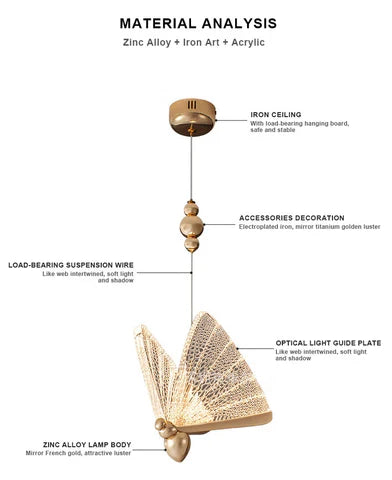 Beleuchten Sie Ihr Zuhause mit der atemberaubenden Royallure Butterfly Pendant Hanging Light Lampen-Chandelier. Perfekt für Schlafzimmer, Esszimmer, Cafés und mehr, kombiniert diese exquisite Lampe ästhetische Schönheit mit fortschrittlicher Funktionalität. Hergestellt aus hochwertigem PMMA-Lichtleitungsmaterial und verbessert mit einem titan-silbernen Hardware-Finish, zeigt sie filigrane Schmetterlingsflügel, die mit einer energieeffizienten LED-Lichtquelle eingelegt sind. Genießen Sie die Vielseitigkeit von drei einstellbaren Farbtemperaturen - weiß, neutral und warmes Licht - die es Ihnen ermöglichen, die perfekte Atmosphäre für jeden Anlass zu schaffen.