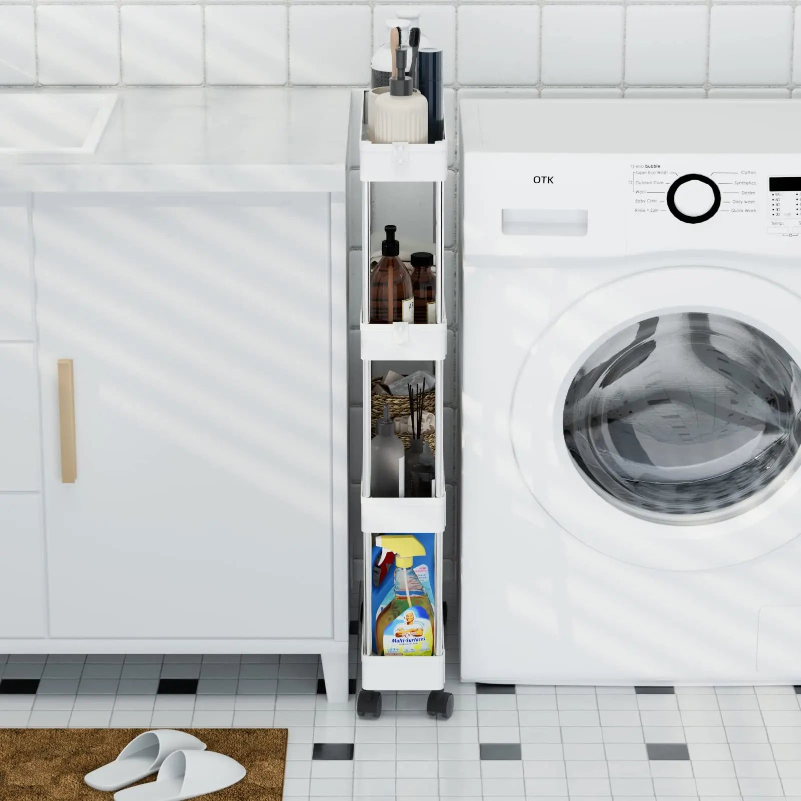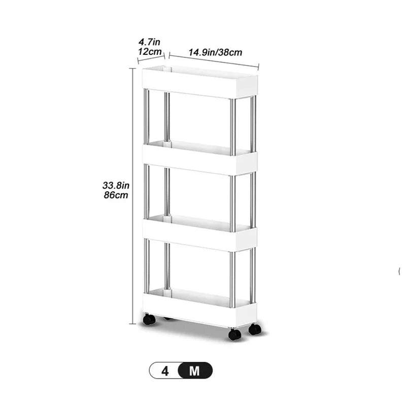 Organisieren Sie Ihre Küche, Ihr Badezimmer oder Ihr Wohnzimmer mühelos mit diesem 4-stufigen Küchenorganisator. Hergestellt aus hochwertigem PP-Kunststoff, ist dieses schlanke Regal dafür ausgelegt, in engen Räumen zu passen und jeden Zentimeter Ihres Zuhauses optimal zu nutzen. Ausgestattet mit glatten Universalrädern und Seitenhaken ist es einfach zu bewegen und praktisch zur Aufbewahrung einer Vielzahl von Gegenständen, von Lebensmitteln und Gewürzen bis hin zu Toilettenartikeln und Werkzeugen. Dieser kompakte und langlebige Wagen ist ein Muss für moderne Haushalte, die Stil und Funktionalität suchen.