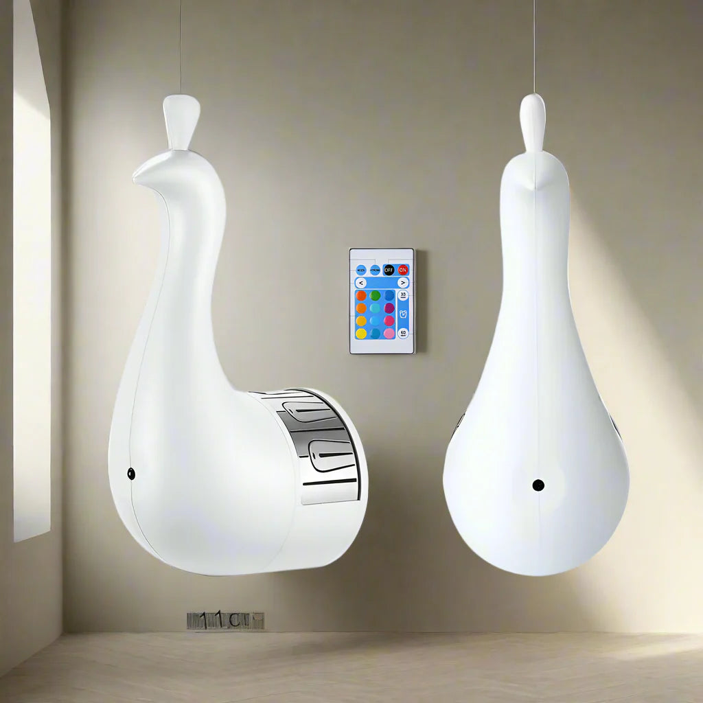 Verwandeln Sie Ihr Zimmer in einen ruhigen und romantischen Raum mit der Pfauen-Projektionsnachtlampe. Mit 12 lebhaften Farben und einer atemberaubenden Projektion von Pfauenfedern bringt diese Lampe Eleganz und Wärme in Ihr Schlafzimmer, Wohnzimmer oder jeden anderen Raum. Ausgestattet mit einer Fernbedienung zum Dimmen, zur Farbauswahl und einer Timerfunktion ist diese Lampe perfekt zum Entspannen, zur Verbesserung des Schlafs oder als dekorative Beleuchtung für Feiertage und besondere Anlässe. Hergestellt aus hochwertigen Silikon-, Metall- und ABS-Materialien, ist sie eine langlebige und stilvolle Ergänzung für jedes Zuhause.