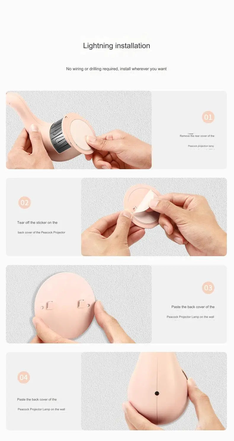 - Romantische Pfauenprojektion: Projektiert schöne und farbenfrohe Muster von Pfauenfedern und schafft ein einzigartiges visuelles Erlebnis.