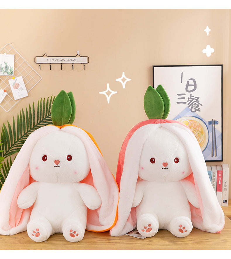 Wechseln Sie zwischen Karotte und Erdbeere mit diesem niedlichen umkehrbaren Bunny-Plüschpuppe!