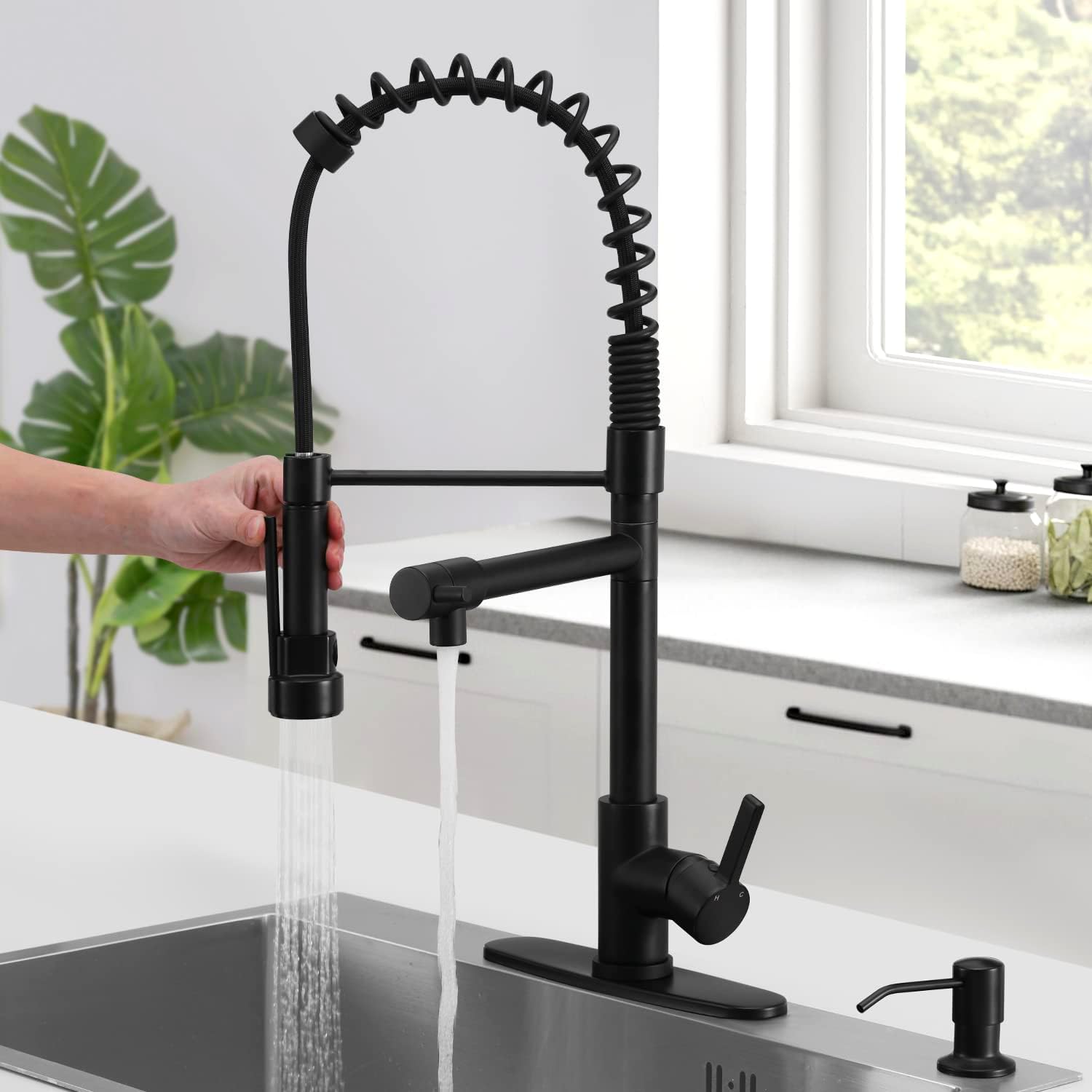 Matt schwarze Küchenarmatur mit herausziehbarem Sprühkopf