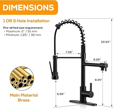 Die matte schwarze Küchenarmatur mit integriertem Sprühkopf wurde entwickelt, um Ihrer Küche einen modernen und industriellen Touch zu verleihen. Mit einem hohen Bogen und einer 360° schwenkbaren Düse bietet diese Armatur maximale Flexibilität und Benutzerfreundlichkeit für alltägliche Aufgaben in der Küche. Das Einhebel-Design sorgt für eine reibungslose Kontrolle der Wassertemperatur und des Durchflusses. Hergestellt aus strapazierfähigem Messing und mit wassersparenden Funktionen ausgestattet, ist diese Armatur perfekt für jede geschäftige Küche, sei es für den Hausgebrauch oder für professionelle Köche.