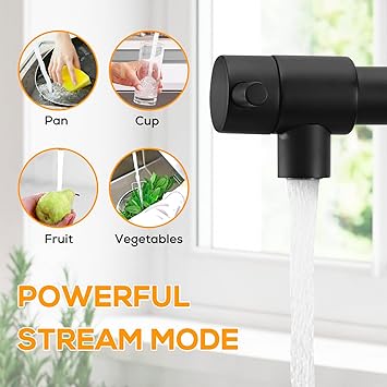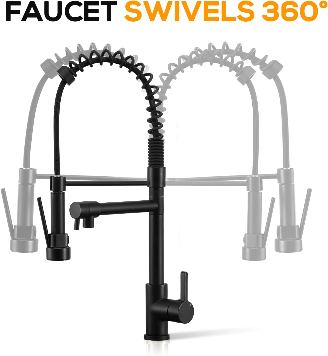 Die matte schwarze Küchenarmatur mit integriertem Sprühkopf bringt sowohl Stil als auch Effizienz in jede Küche dank ihrer praktischen Funktionen und ihres modernen Designs.