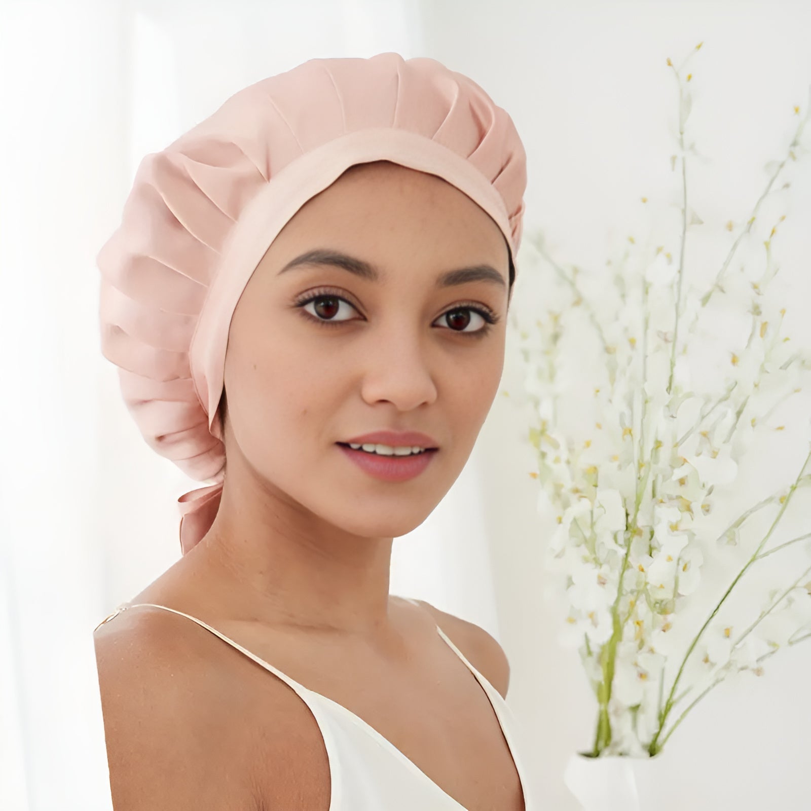 Diese Nachthaube ist aus doppelten Lagen 100% reiner Maulbeerseide innen und außen gefertigt und bietet unvergleichliche Haltbarkeit und Weichheit. Die natürlichen Proteinfaser der Seide bieten sanfte Pflege für dein Haar, im Gegensatz zu kunststoffhaltigen Satinhauben, und gewährleisten ein sanftes und atmungsaktives Schlaferlebnis.