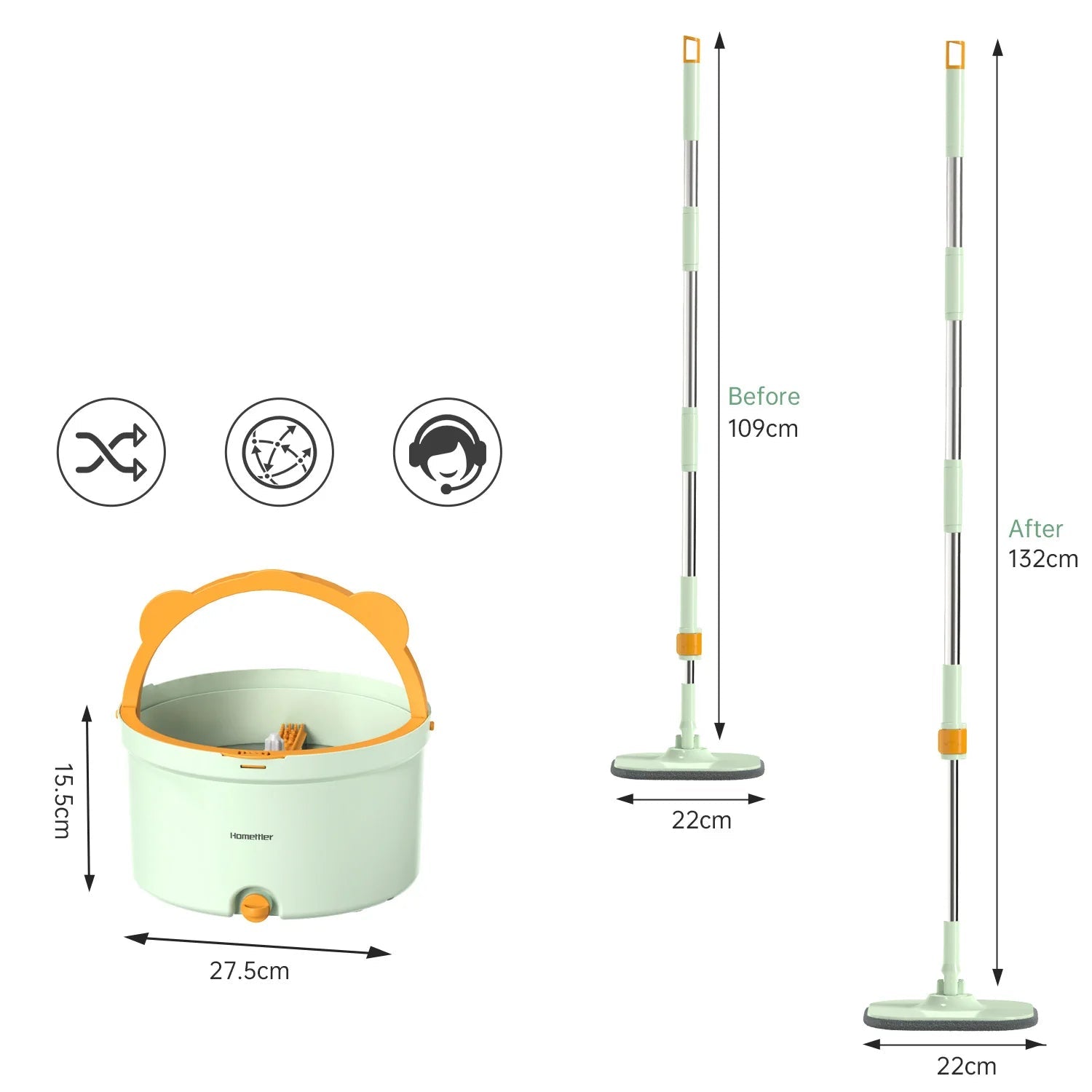 • 💧 Selbstreinigungsmechanismus: Keine schmutzigen Mopköpfe mehr! Legen Sie den Mop einfach in den Eimer, um ihn mit minimalem Aufwand zu reinigen.