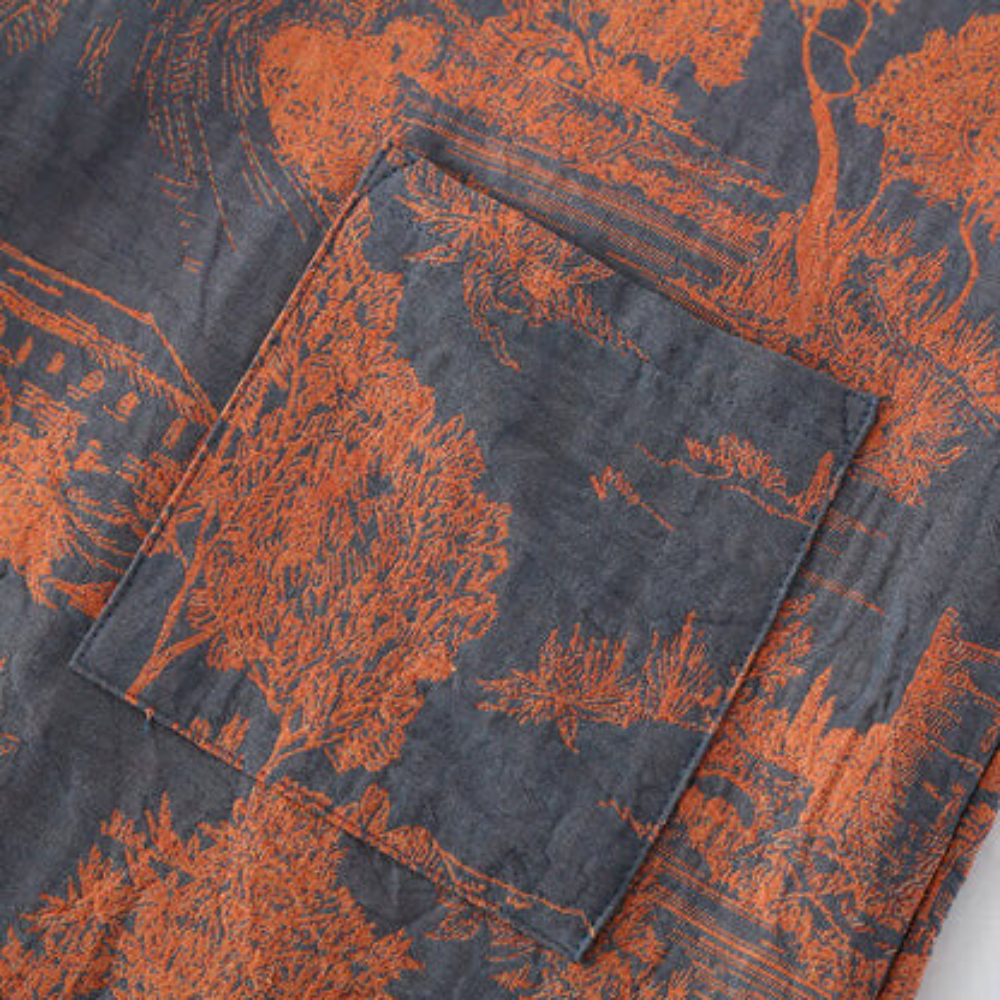 Stellen Sie sich vor, Sie hüllen sich in einen Bademantel, der natürliche Ruhe und luxuriösen Komfort vereint. Der Serene Woodlands Kimono Robe, mit natürlichen Baumdrucken und einem lockeren Design, inspiriert Entspannung und Eleganz.