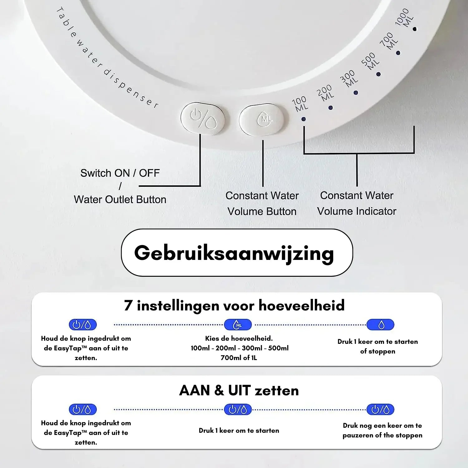 💧 Anpassbare Wasserausgabe: Die einstellbare Lautstärkeregelung ermöglicht es Ihnen, die genaue Menge Wasser zu wählen, die Sie benötigen, was sie perfekt für verschiedene Situationen macht.