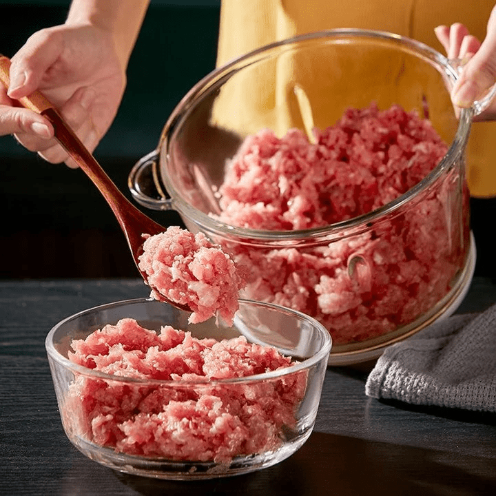 Unsere Elektrische Küchenmühle ist nicht nur auf Fleisch beschränkt; sie kann eine Vielzahl von Zutaten verarbeiten, wodurch Sie zahlreiche Rezepte ausprobieren und Ihre kulinarischen Fähigkeiten erweitern können. Von Früchten und Gemüse bis hin zu Bohnen und Nüssen – Ihrer Kreativität sind keine Grenzen gesetzt.
