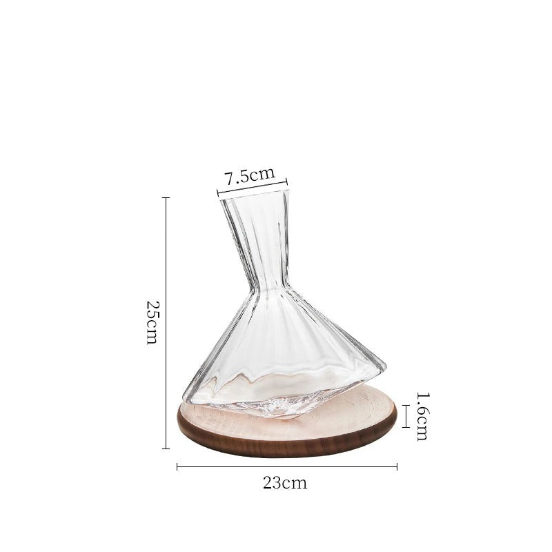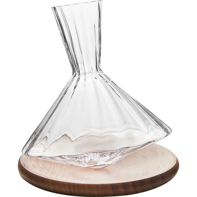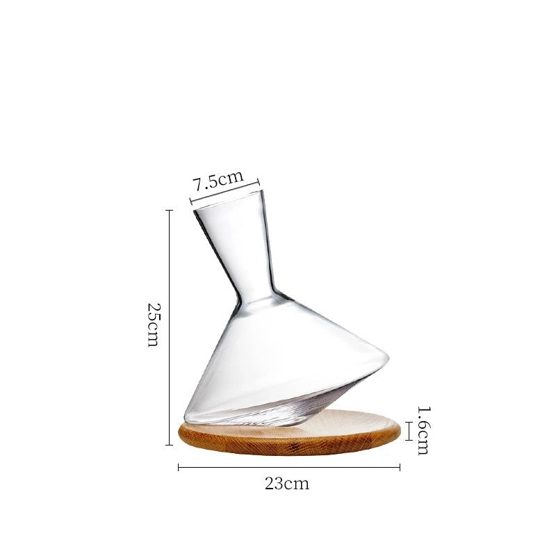 SpinServe – Rotierende Glaskaraffe mit Holzbasis