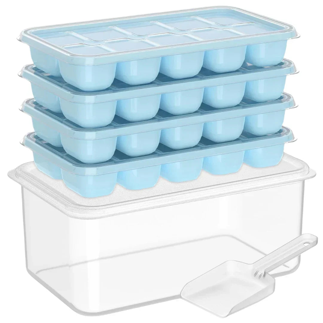 Stapelkbare Silikon-Eiswürfelschale Set mit Deckeln – Mühelose Eisherstellung und Lagerung