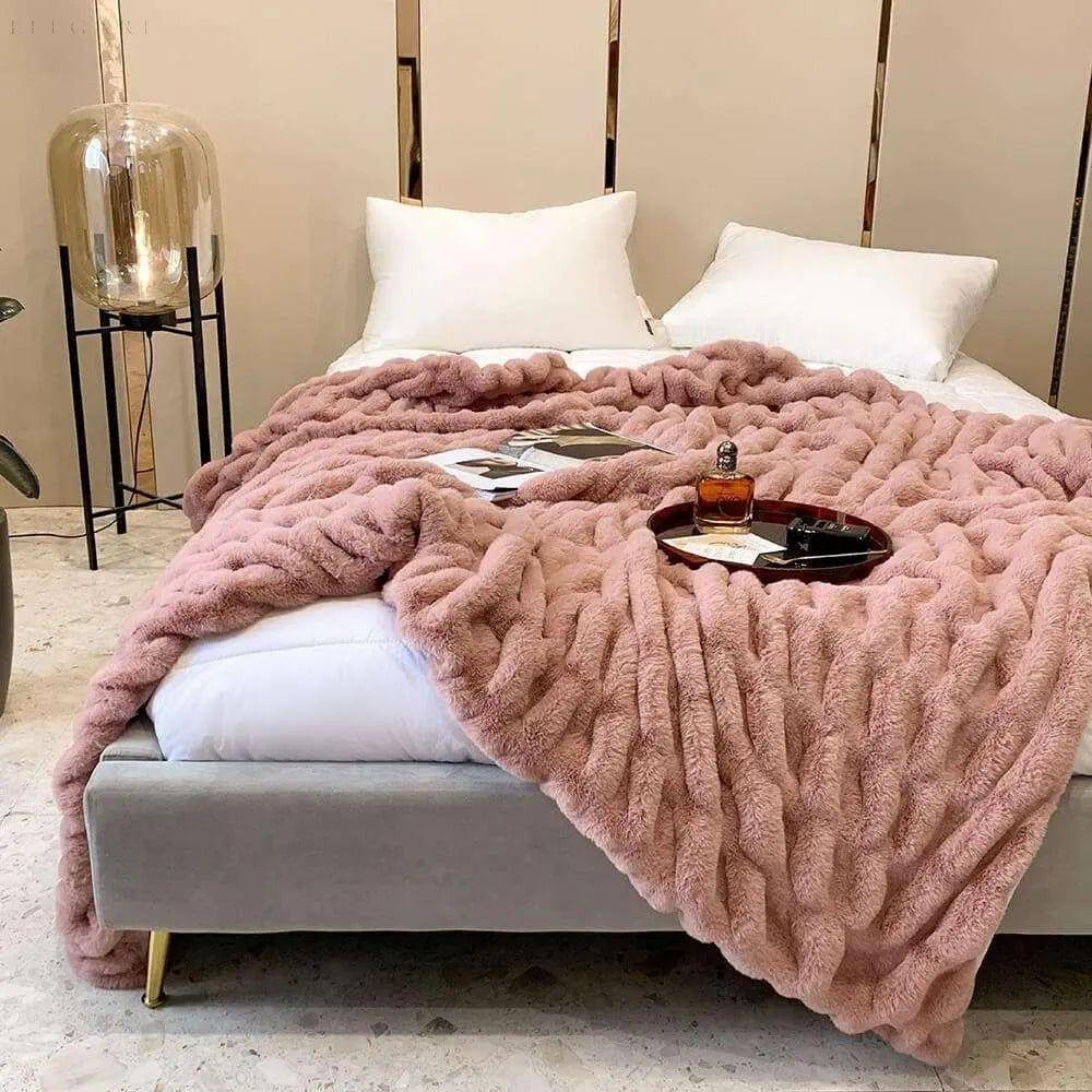 - Beidseitiges Design: Eine Seite aus Korallenvlies für Weichheit, die andere Seite aus synthetischem Fell für zusätzliche Wärme.