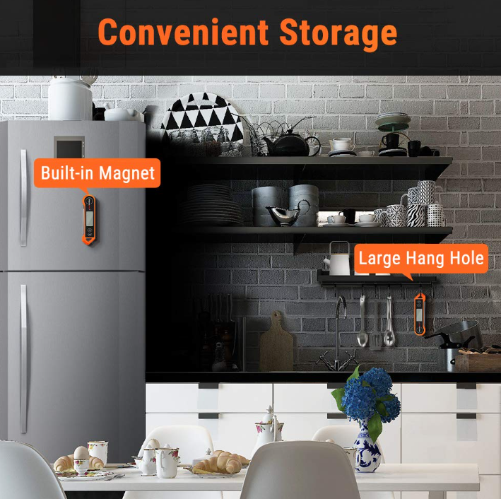 Mit Bewegungssensor-Technologie ausgestattet, wacht das Thermometer automatisch auf, wenn es entfaltet wird, und wechselt in den Energiesparmodus, wenn es geschlossen ist, um die Batterielebensdauer zu schonen. Die faltbare Sonde und der Magnetrückseiten sorgen für eine einfache Aufbewahrung, während die wasserdichte Bauweise Haltbarkeit selbst in unordentlichen Kochumgebungen gewährleistet.
