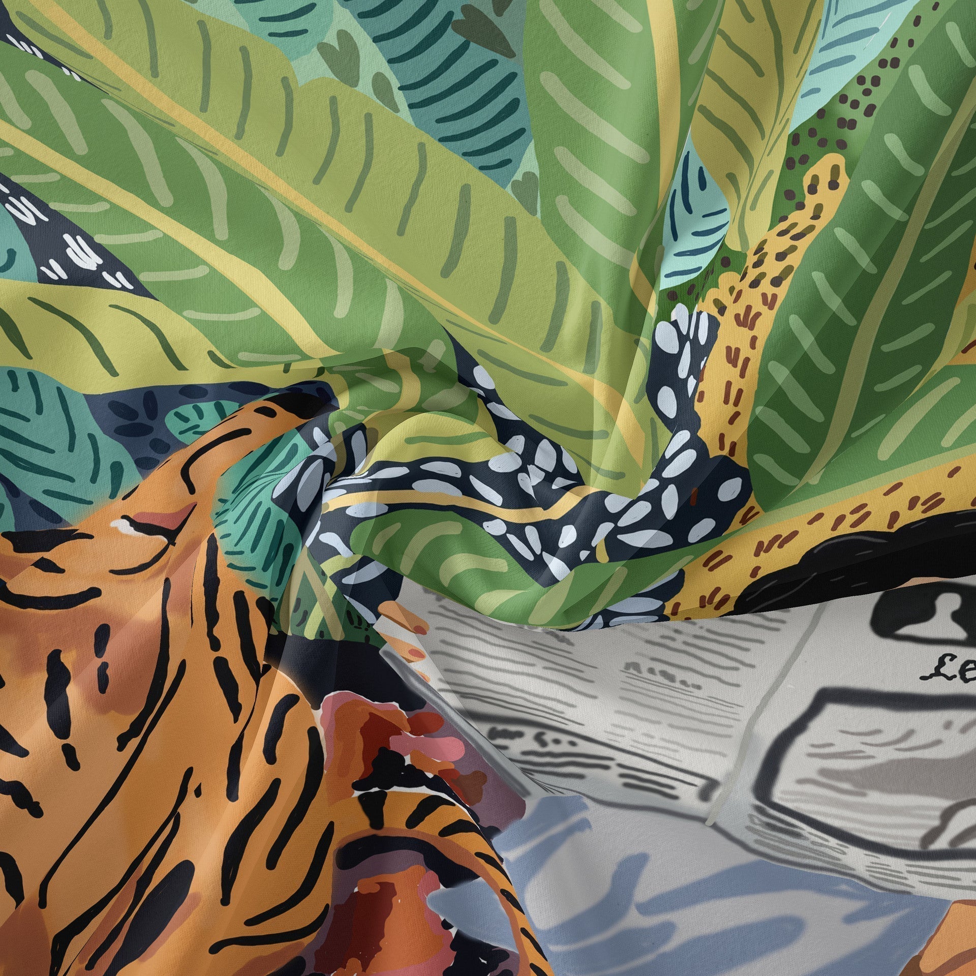 Verleihen Sie Ihrem Zuhause eine aufregende und dynamische Atmosphäre mit unserem exquisiten Wandbehängung, das ein faszinierendes Motiv von einem Tiger und einem Mädchen präsentiert. Dieses Kunstwerk ist die perfekte Wanddekoration für Ihr Wohnzimmer, Schlafzimmer oder thematische Feste und bringt einen Hauch von Boho- und urbanem Flair in Ihre Räume.