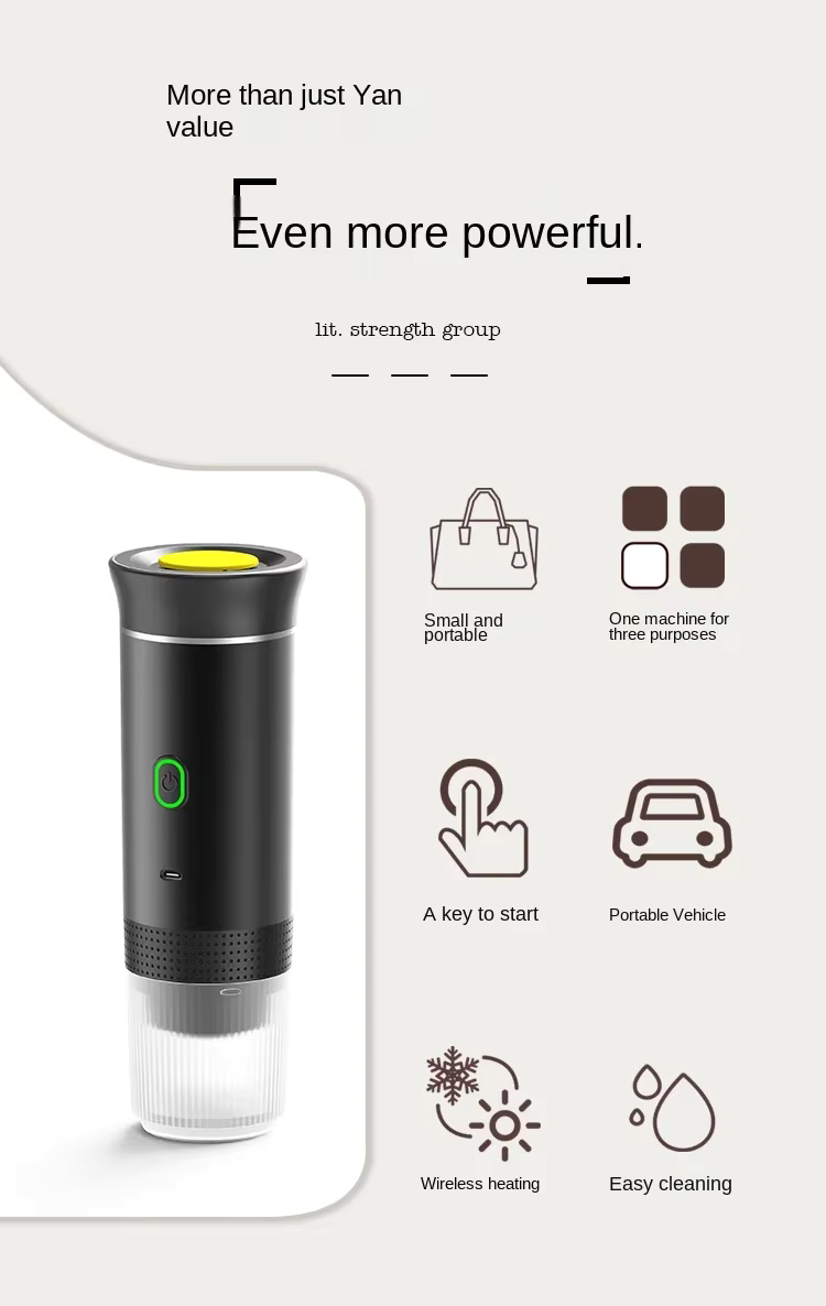 Die tragbare kabellose Espressomaschine ist für Kaffeeliebhaber unterwegs konzipiert. Diese 3-in-1-Maschine ist mit gemahlenem Kaffee, kleinen Kapseln und großen Kapseln kompatibel und bietet Vielseitigkeit für Ihre Kaffee-Bedürfnisse. Mit ihrer intelligenten Heizfunktion, dem praktischen Laden und dem kompakten Design ist sie perfekt für Reisen, Camping, Autofahrten oder die Verwendung zu Hause. Genießen Sie Espresso in Barista-Qualität, wo immer Sie sind, mit dieser einfach zu bedienenden und zu reinigenden Kaffeemaschine.