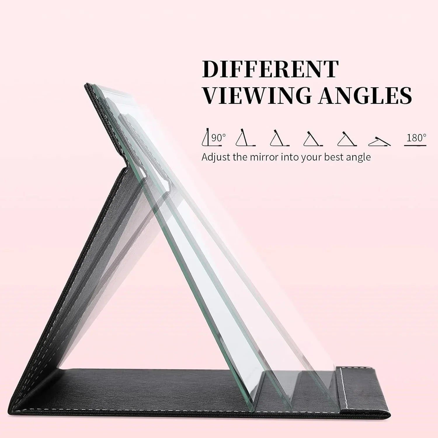 Der verstellbare Stand ermöglicht mehrere Betrachtungswinkel, wodurch er ideal für verschiedene Schönheitsroutinen ist. Vom Auftragen von Eyeliner bis zum Überprüfen Ihrer Frisur bietet dieser Spiegel ein stabiles, freihändiges Erlebnis, damit Sie sich auf das Perfektionieren Ihres Looks konzentrieren können.