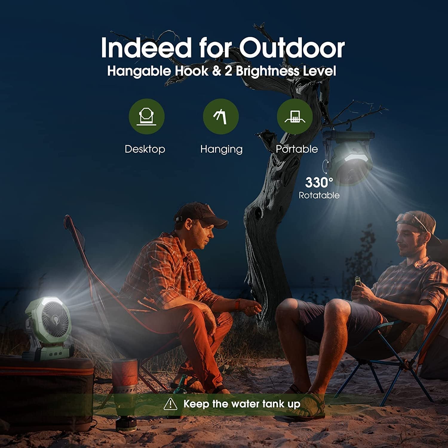 LED Campinglaterne: Neben seiner Kühlfunktion dient dieser tragbare Ventilator auch als LED Campinglaterne. Er bietet zwei Helligkeitseinstellungen: angenehme Helligkeit für weiches, nicht blendendes Licht und Leuchtkraft für die Beleuchtung des gesamten Zeltes. Ideal für Camping, Wandern und Grillabende.