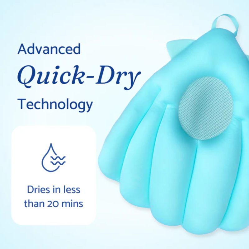Der Spülenbader für Säuglinge sorgt mit seinem innovativen Netzboden dafür, dass Wasser schnell und effizient abfließt, wodurch Schimmel- und Mehltauansammlungen verhindert werden. Mit seinem praktischen Hakenriemen trocknet er schnell und ist im Handumdrehen wieder einsatzbereit. Diese schnelltrocknende Eigenschaft vereinfacht die Pflege und hält die Badeumgebung Ihres Babys sauber und hygienisch.