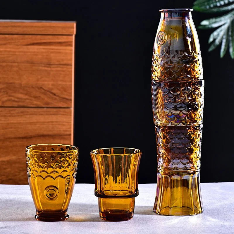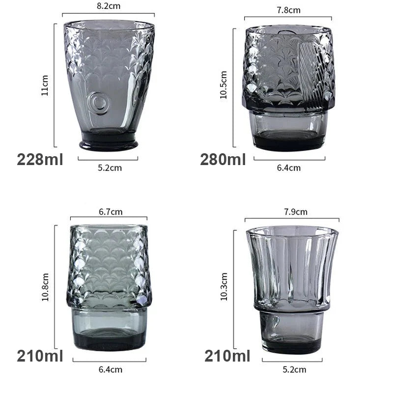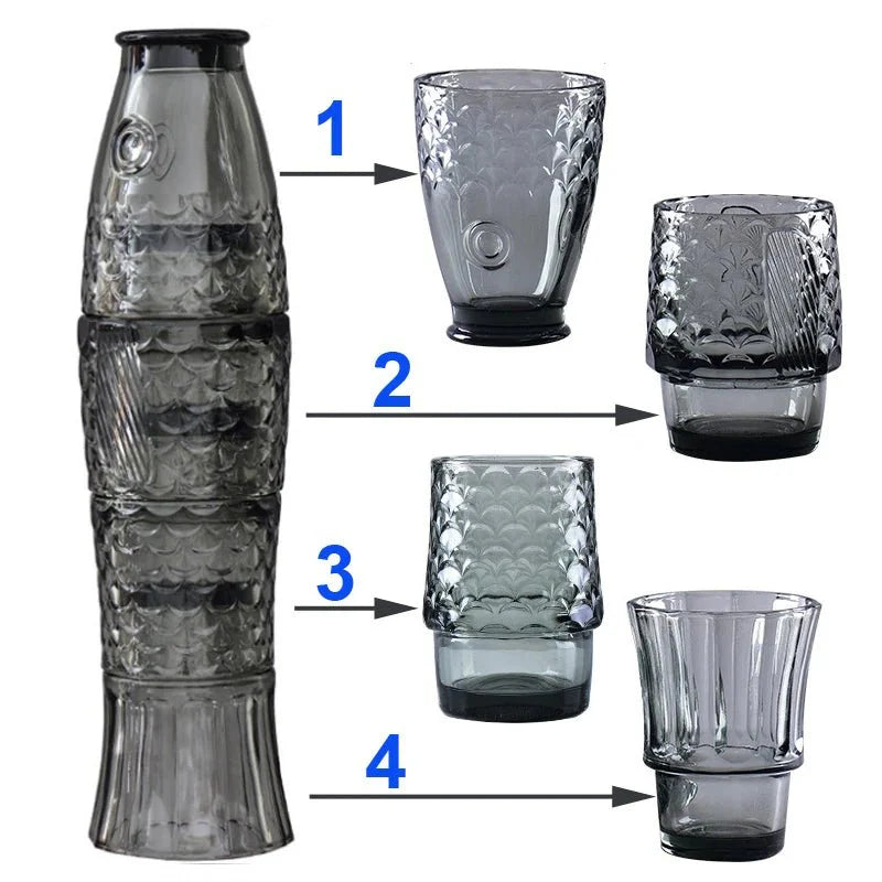 Vierteilige geprägte Koi stapelbare Gläser Set
