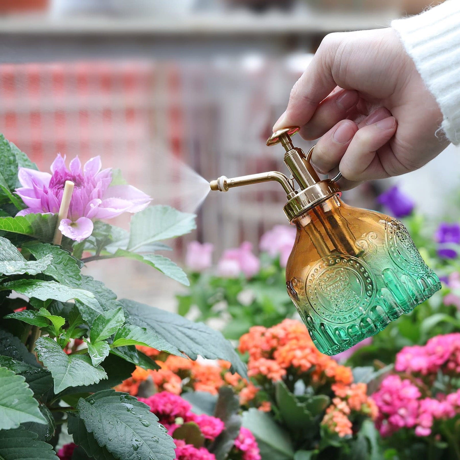 Bringen Sie Charme in Ihren Garten mit dieser eleganten Vintage-Glasflasche mit einem Metallsprühkopf. Dieser schöne Pflanzensprayer sorgt für eine optimale Bewässerung Ihrer Blumen und verleiht Ihrem Innenraum oder Garten einen stilvollen Akzent. Mit ihrem verfeinerten Design und praktischen Funktionalität ist dieser Sprayer ein Muss für jeden Pflanzenliebhaber.