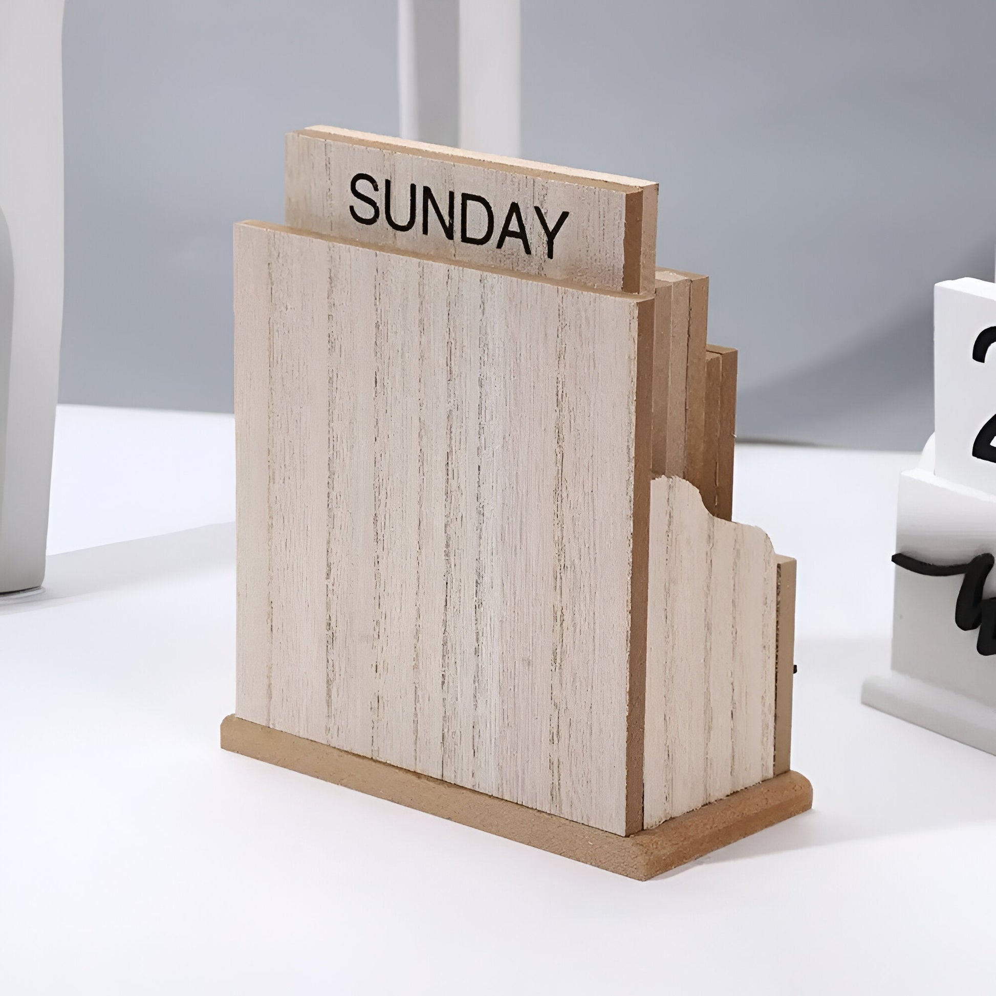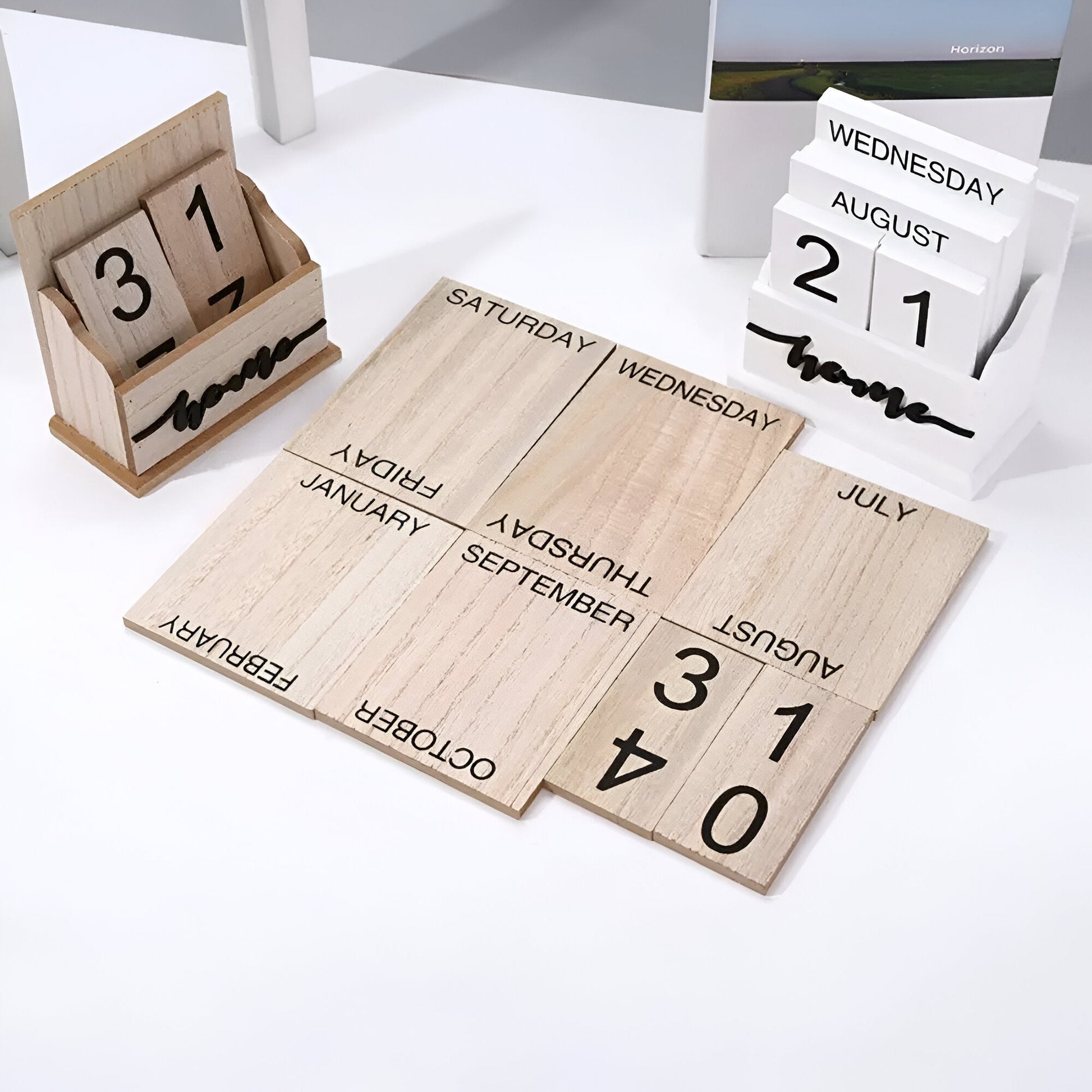 Peppen Sie Ihren Schreibtisch mit diesem Vintage-Design-Holzblockkalender auf! Behalten Sie die Tage mit Stil und Nostalgie im Blick, und er eignet sich perfekt zum Anzeigen von Karten oder als Schreibtischdekoration. Verabschieden Sie sich von langweiligen Kalendern und begrüßen Sie die Fantasie!