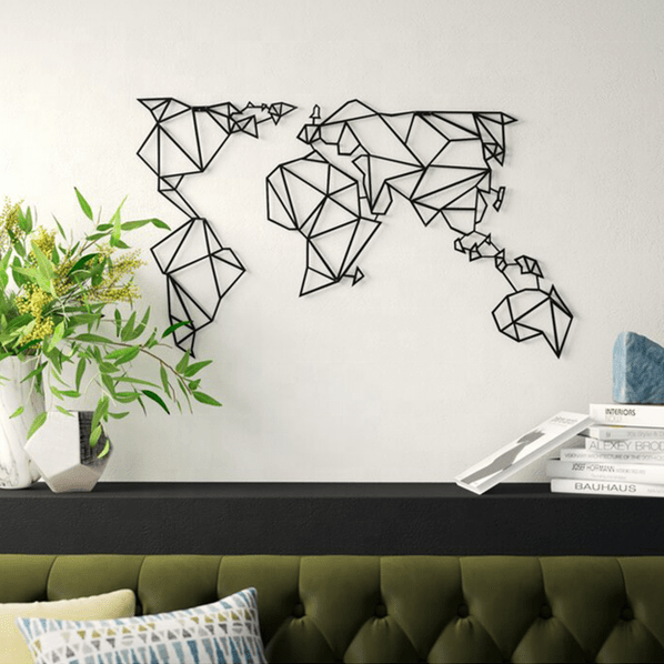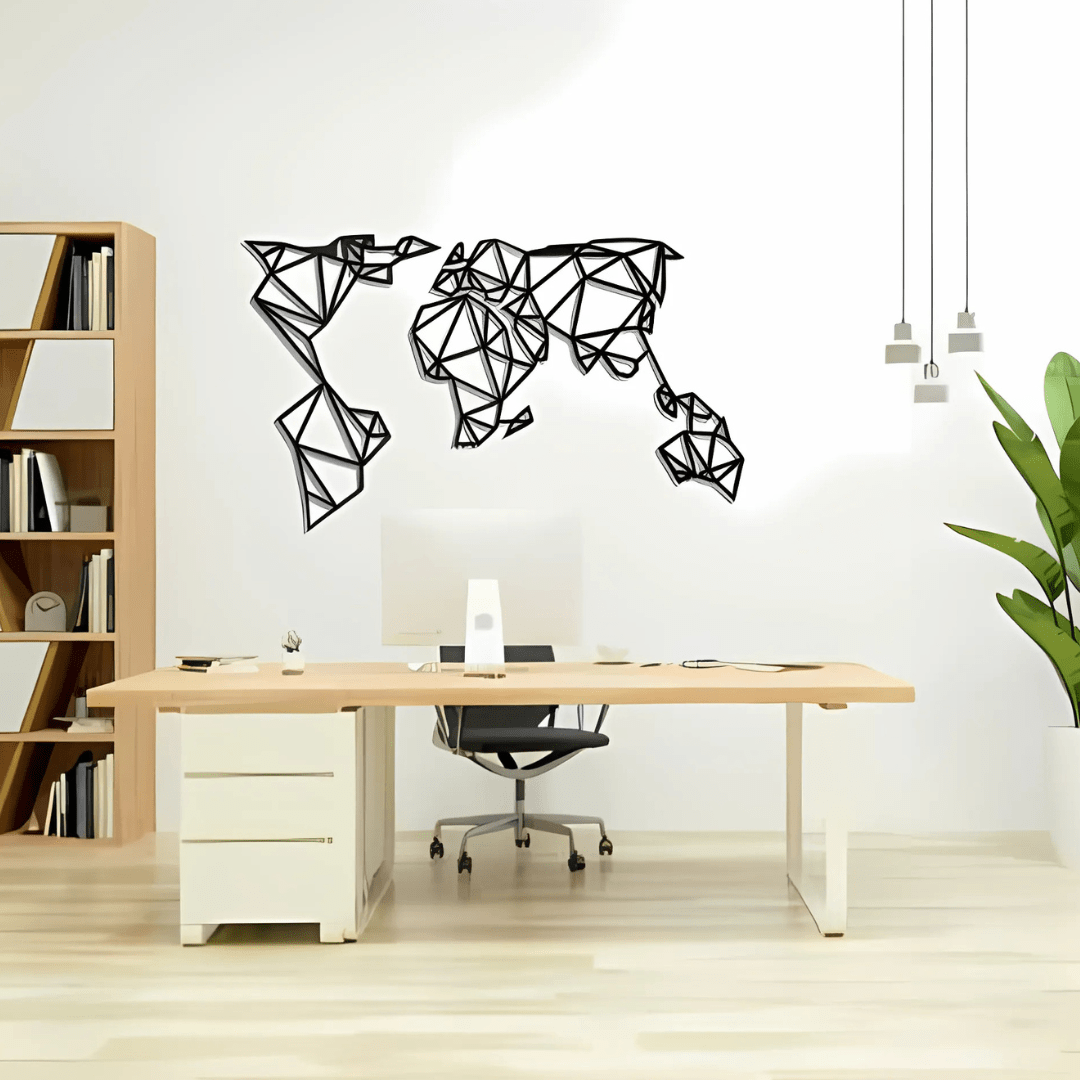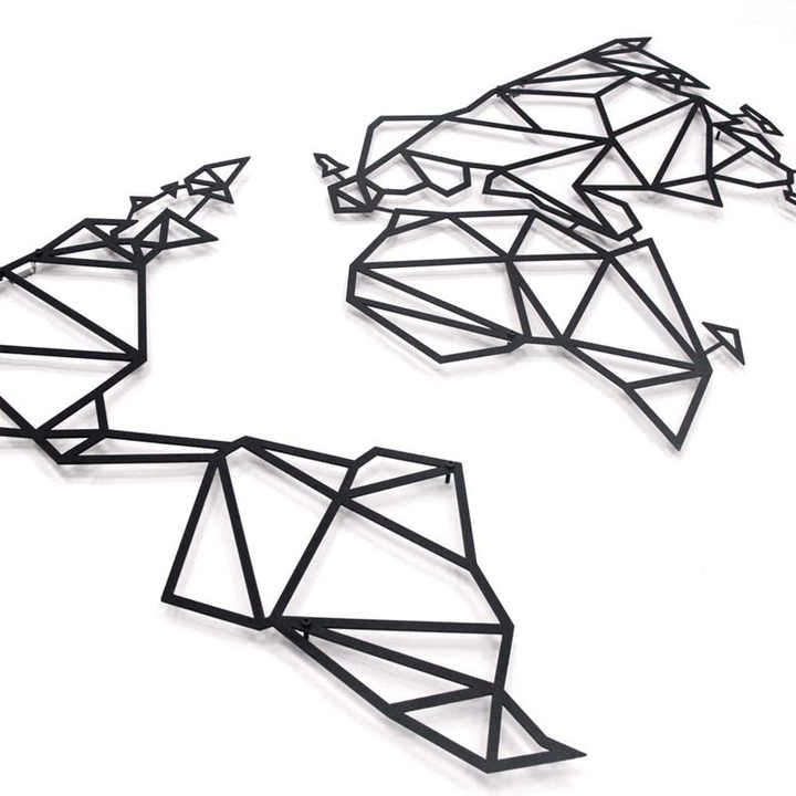 🌍 Minimalistisches geometrisches Design – Eine schlanke, schwarze Eisenweltkarte, die jedem Wand eine moderne Note verleiht.