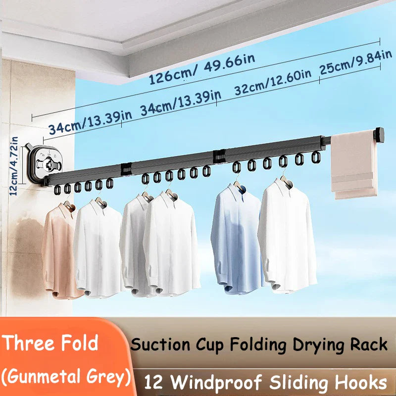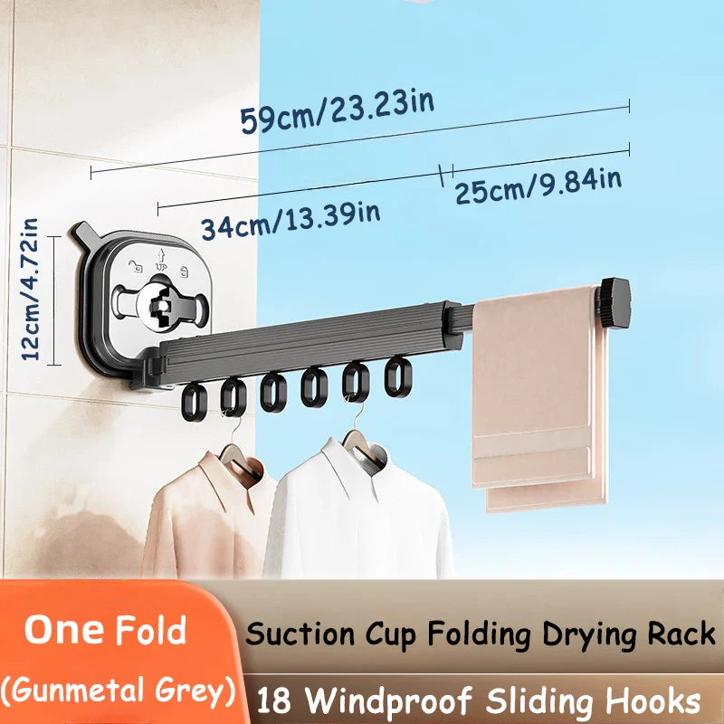 Dieses vielseitige und robuste Gestell bietet ein klappbares und ausziehbares Design, perfekt für kleine Wohnungen, Badezimmer oder Wäschereien. Wählen Sie zwischen der Bohr- oder der Saugnapf-Installationsmethode, die es einfach macht, es an verschiedenen Wandtypen zu montieren.