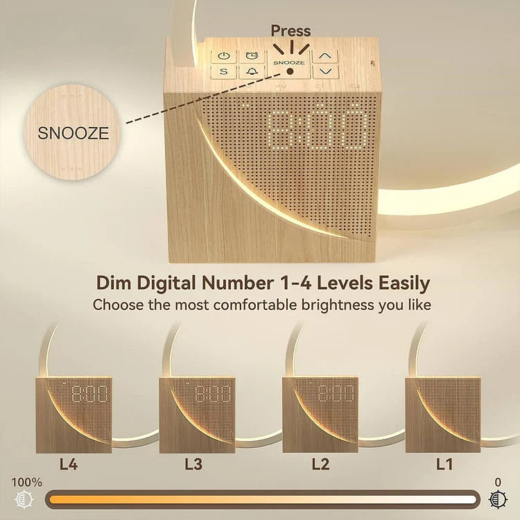- Elegantes Design : Hergestellt aus Holz und Aluminium, kombiniert dieser Wecker Ästhetik und Funktionalität, um zu jedem Schlafzimmerstil zu passen.