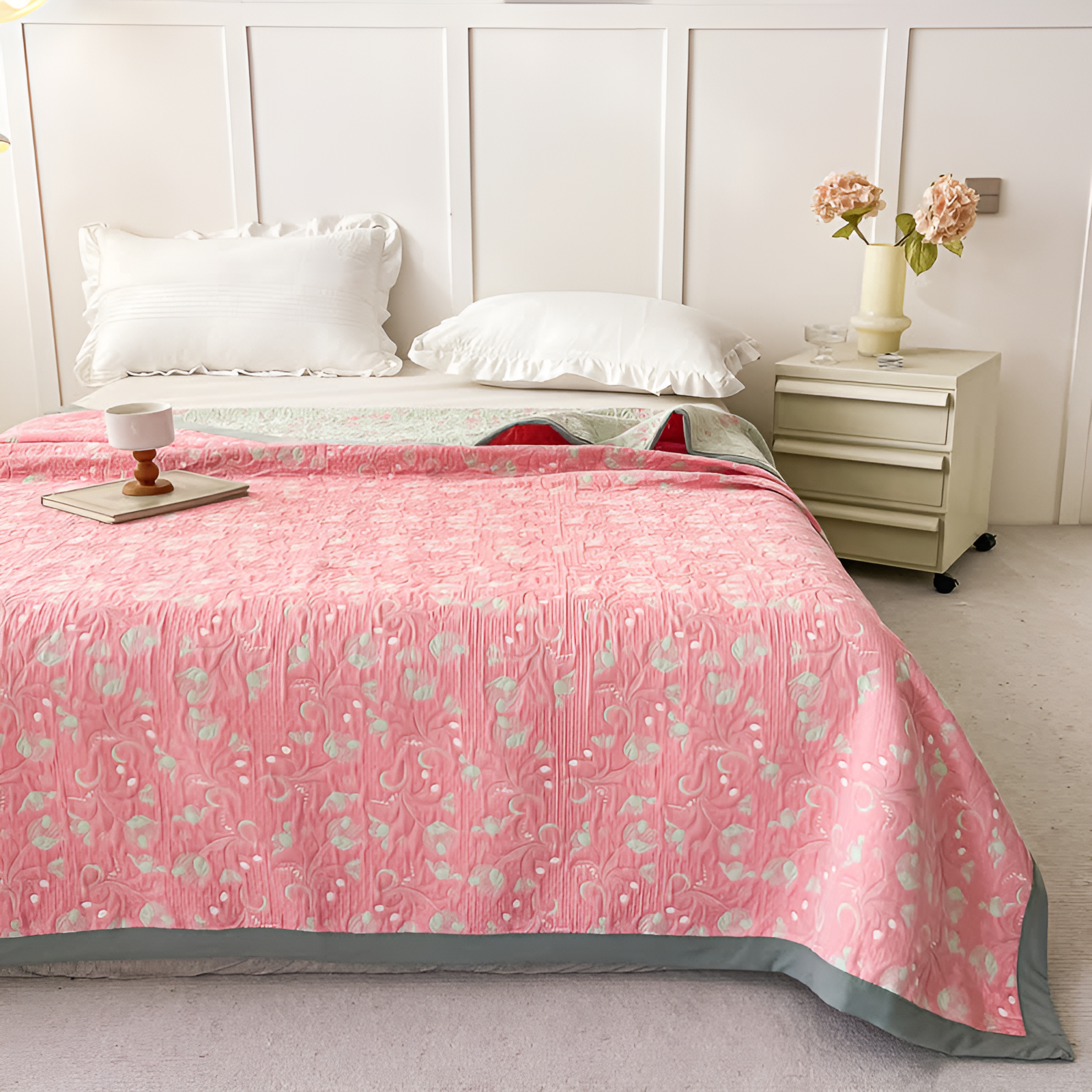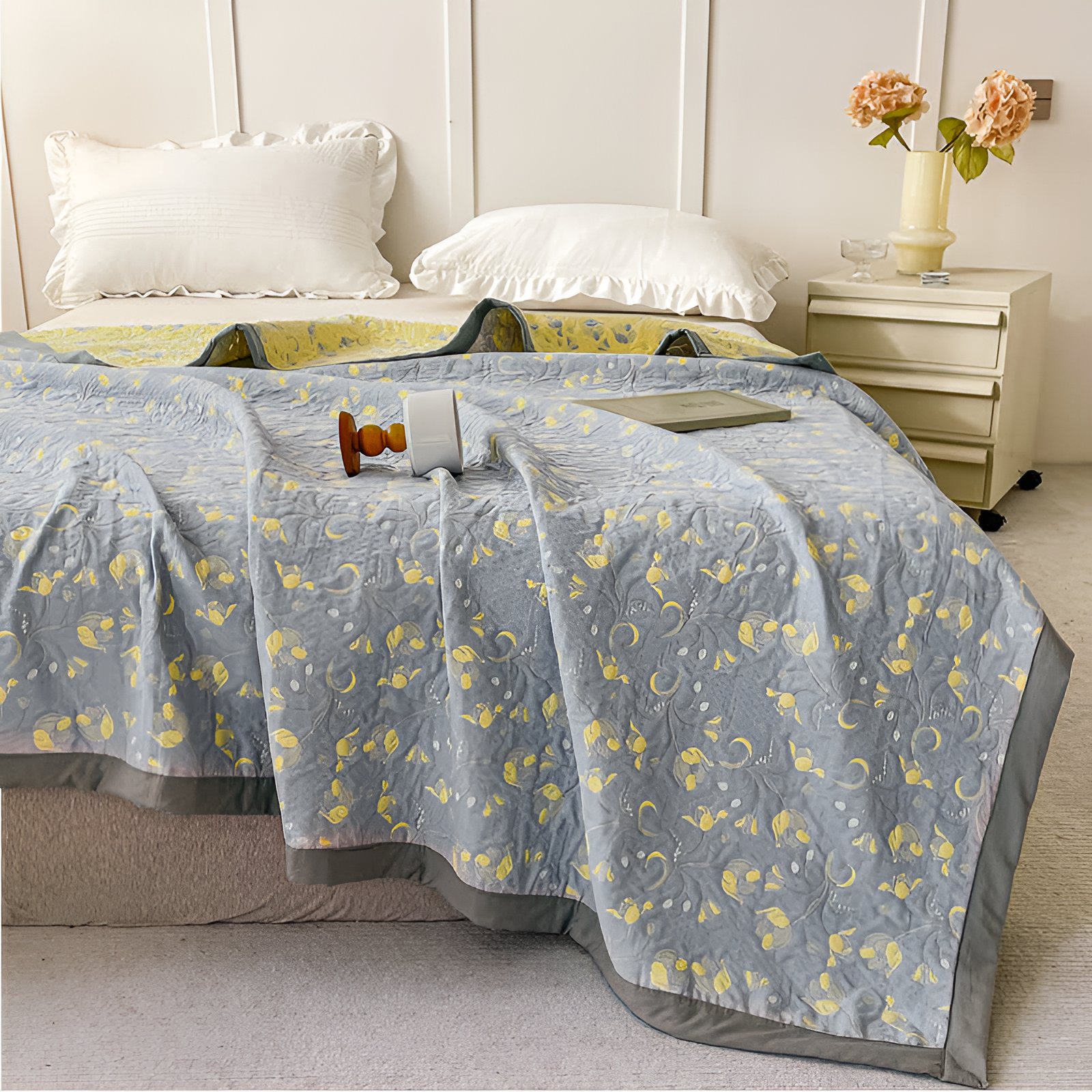 Verwandeln Sie Ihr Schlafzimmer in eine ruhige Oase mit unserer Meadow Mist Wende-Cotton-Decke. Mit aufwendigen floralen Mustern kombiniert diese Decke stilvoll Komfort und Funktionalität.